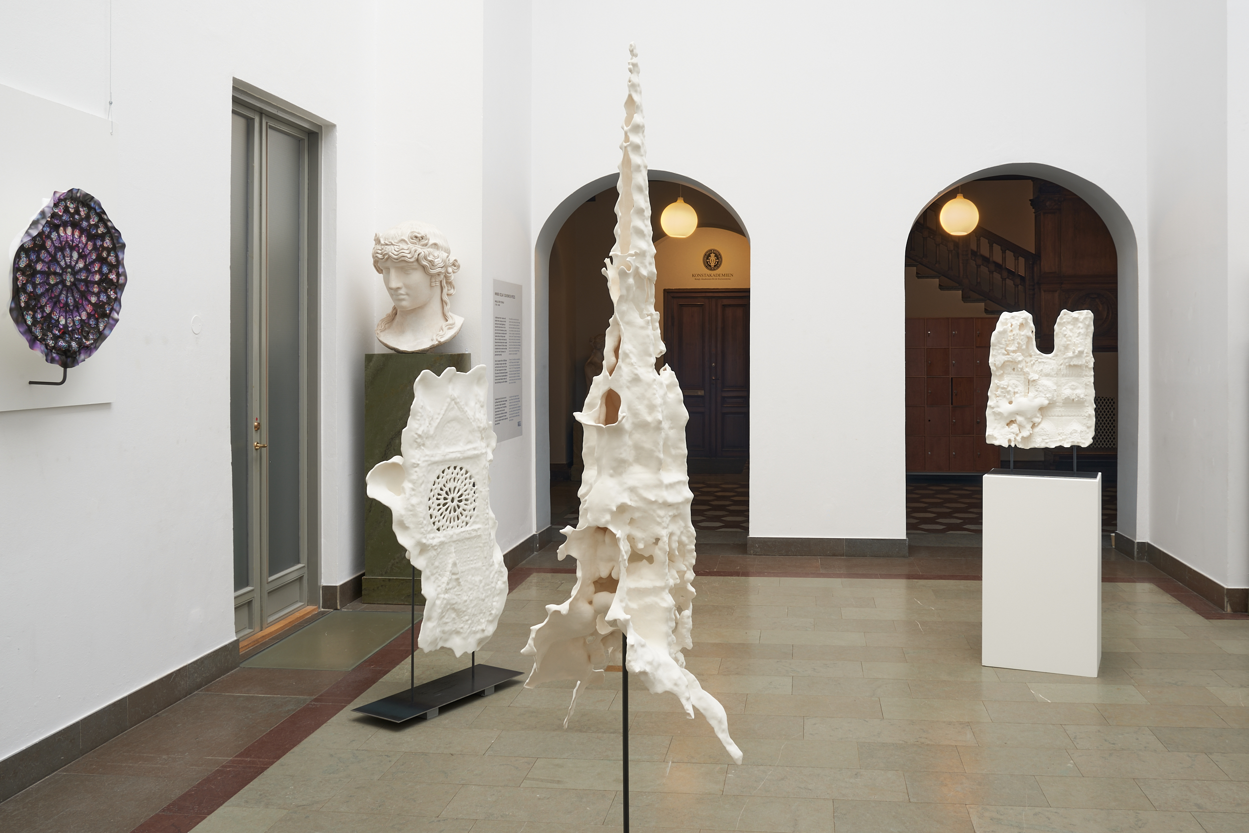 The works in the exhibition are created from the 38,000 images shared on Instagram during the evening that Notre Dame was on fire, April 15, 2019. Through photogrammetry, the images have been brought together into three-dimensional fragments. The physical shapes become snapshots of an otherwise constantly flowing medium and its frozen state gives us time for reflection. The sculptures question hierarchies where traditional (often professional) perceptions of what is considered important and historically interesting can be challenged by a joint action of collecting.